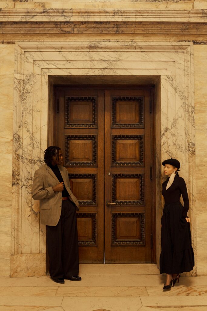 For Alex and Vino’s session, we were very intentional. We started in Bates Hall while the morning light was coming through the windows, then moved into the main hall and staircase for some editorial shots. From there, we finished out in the courtyard to switch things up and get a different feel. Everything is close together, and you’re able to get a full gallery in a short amount of time without it feeling overwhelming.