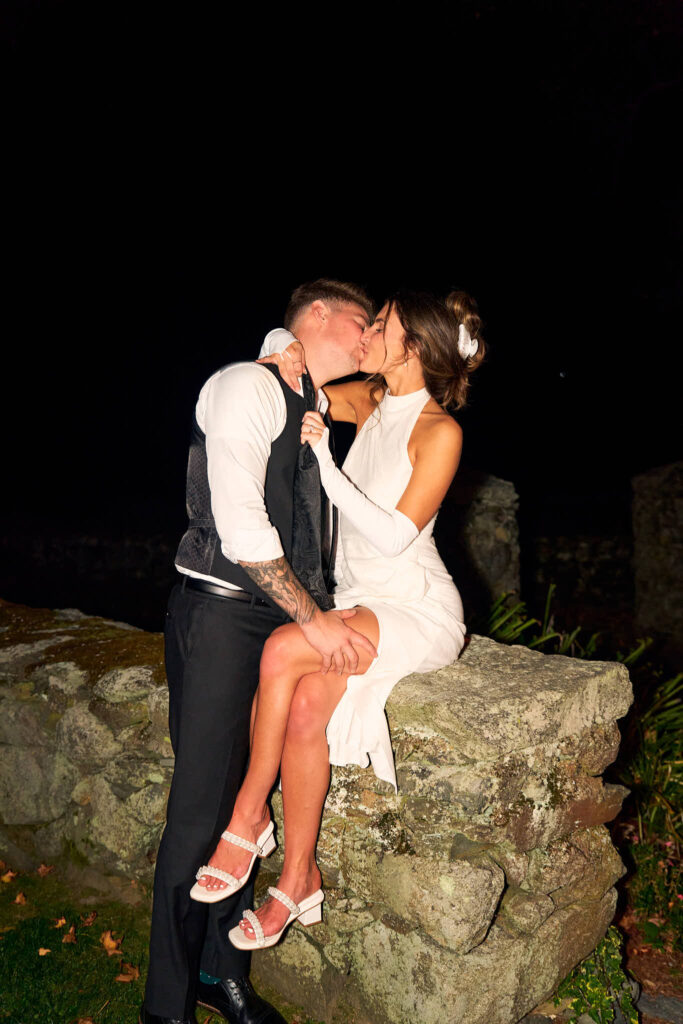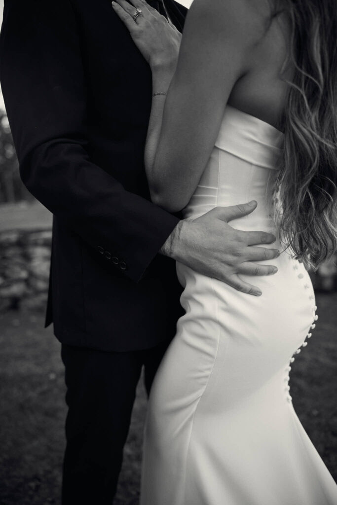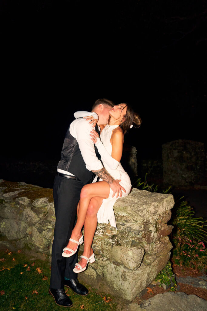 One of the most meaningful parts of the day (and my personal favorite) happened after sunset. Under a clear sky and a bright full moon, Elaina and Andrew exchanged private vows. Just the two of them, standing together on the stone terrace with the moon above them, holding hands and speaking from the heart. It’s rare to see a moment that quiet and grounding on a wedding day. Being there with them for that exchange is something I won’t forget.