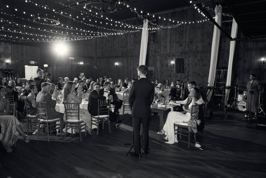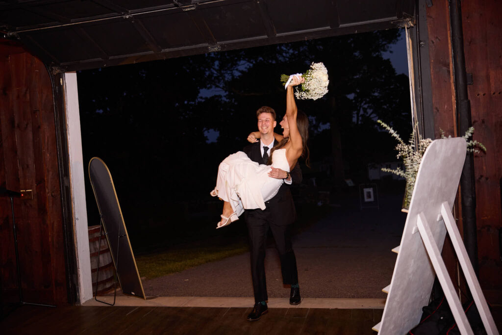 Their reception took place inside the barn at Mount Hope Farm, where guests sat beneath strings of warm lights and toasted the newlyweds. Silver Arrow Band kept the dance floor full all night! With a small guest list, the night felt close-knit, and you could just tell everyone was having a blast.