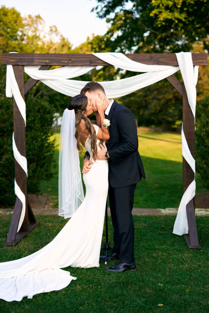 Instead of doing a first look, Elaina and Andrew chose to see each other for the first time at the altar. It made the ceremony even more emotional. From the moment they saw each other, the tears didn’t stop for the rest of the ceremony! Standing under a wooden arbor draped in white and surrounded by greenery, they exchanged vows in front of the people who mean the most to them. I feel so grateful to have been a part of such a deeply moving ceremony.