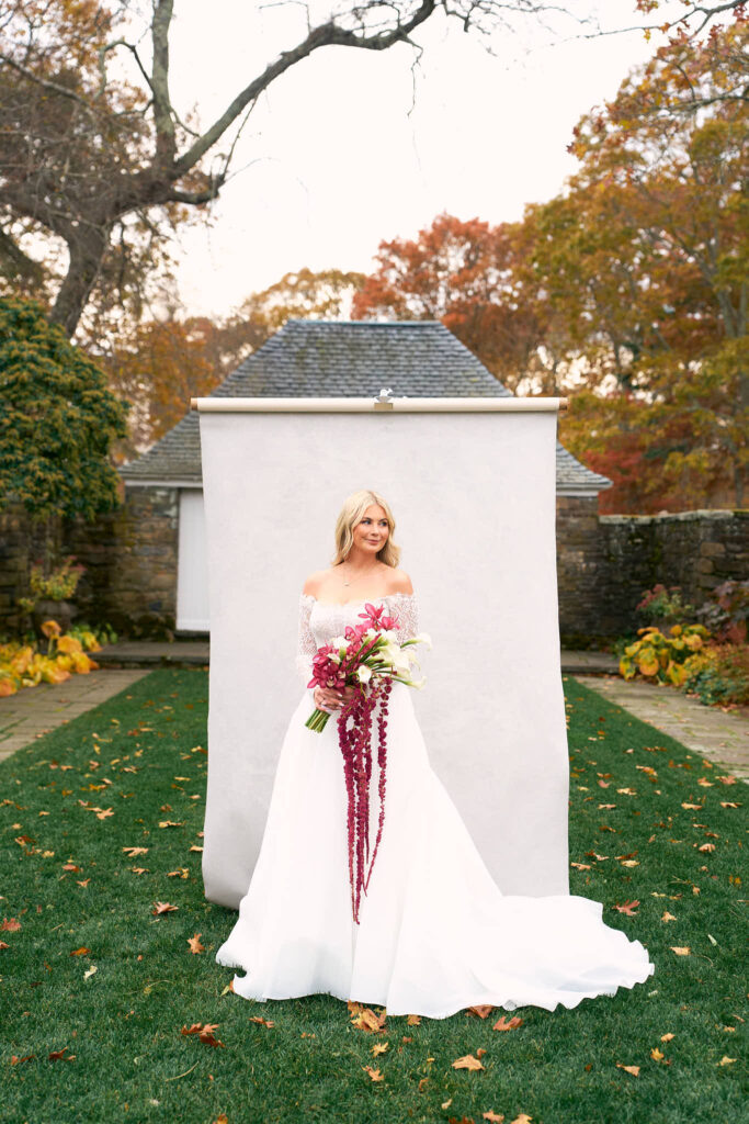 Shepherd’s Run’s clean lines pair incredibly well with editorial elements like backdrops, making it a great venue for couples who want something a little elevated and creative alongside their classic wedding portraits.