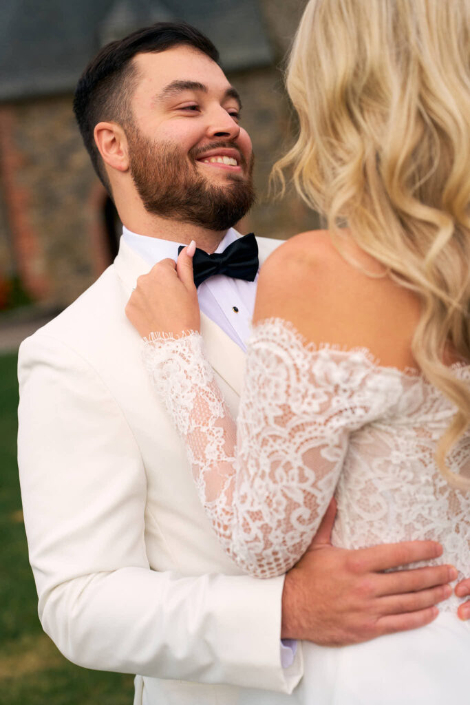 Olivia and Cameron chose to do their first look outside, directly in front of the property. Even before seeing each other, both of them were filled to the brim with emotion. This was a moment they had imagined for years, finally seeing one another dressed for their wedding day.