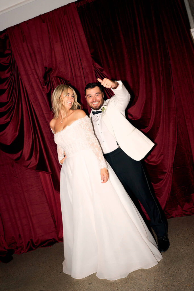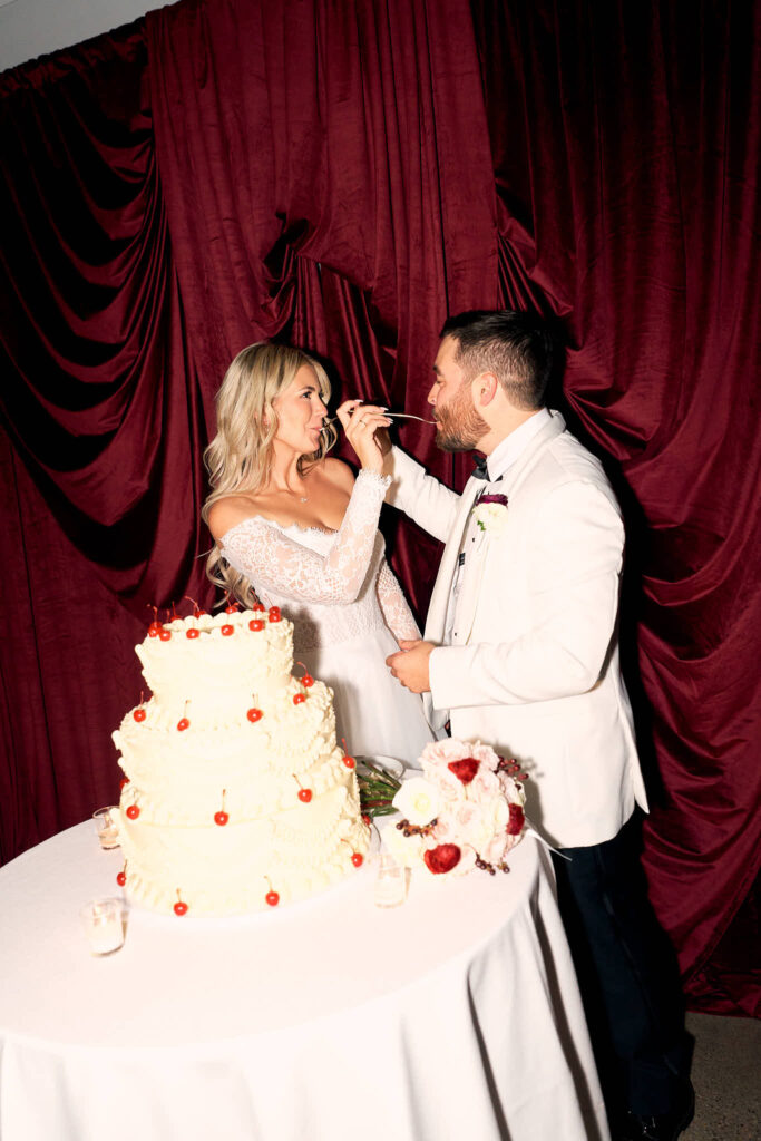 One really unique design element was the custom burgundy cake-cutting backdrop designed by Exquisite Events. Olivia and Cameron cut their cake in front of the backdrop, which made for some great photos, and then we moved the cake aside and captured fun, candid portraits there as well.