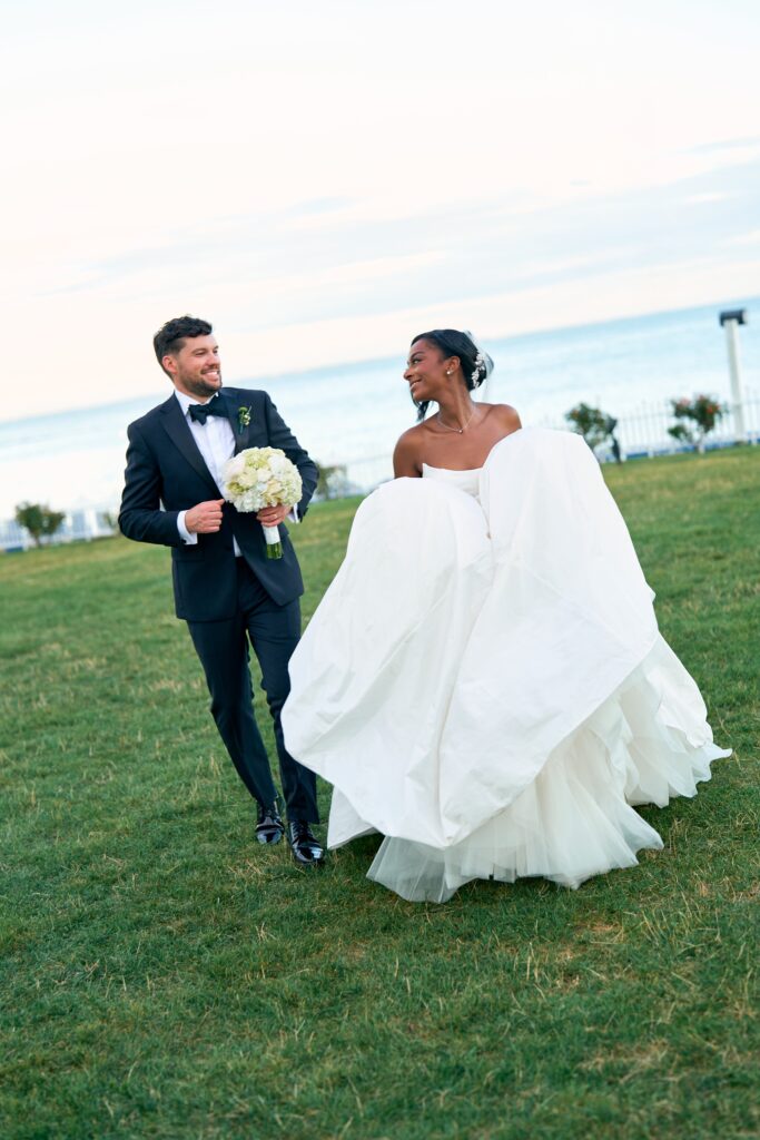 Photography: Love by the Ocean Co. // Venue: Waters Edge Resort & Spa // Wedding Planner: Thalie German // Makeup: JV Beauty Studio // Hair: Bridal Baes // Signage: Sticky Wall Vinyl // Florist: Anna Natoli // Wedding Dress: Kleinfeld Bridal // DJ: NYCT DJ’s & DJ Fire