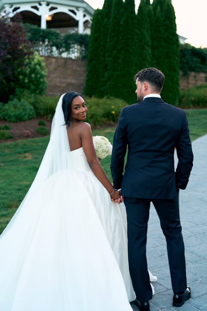 We created a series of portraits using the natural light, her veil, and the clean lines of the space. A mix of black and white images, silhouettes, and movement. Nothing forced, just strong direction, real reactions, and images that felt true to her. This part of the day is a big reason couples work with me. I’m vocal, I give direction, and I make sure you feel confident the entire time.