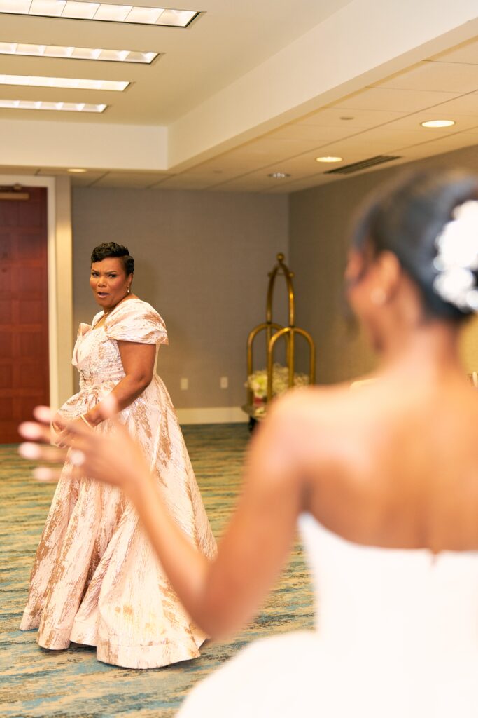 Geralda stepped into her wedding dress from Kleinfeld Bridal and her mom helped button her into the dress. They shared a first look together that was incredibly meaningful, and I’m so glad we documented it.